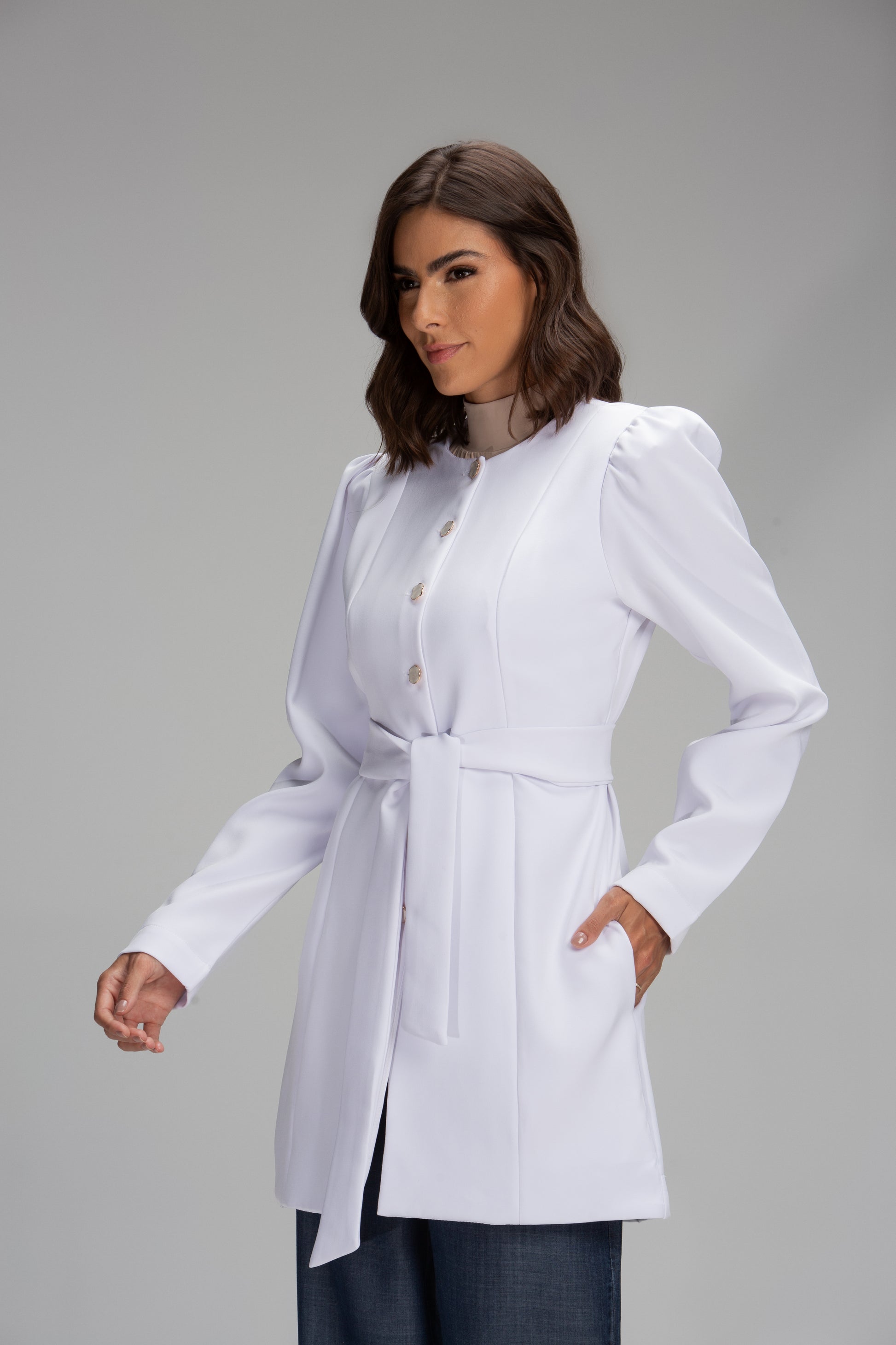 Descubra a elegância e o conforto do jaleco Nina. O detalhe da manga bufante adiciona um toque de sofisticação e modernidade ao jaleco, enquanto o tecido confortável garante liberdade de movimento e conforto durante o uso prolongado. Ideal para profissionais que buscam qualidade e elegância em suas vestimentas de trabalho.